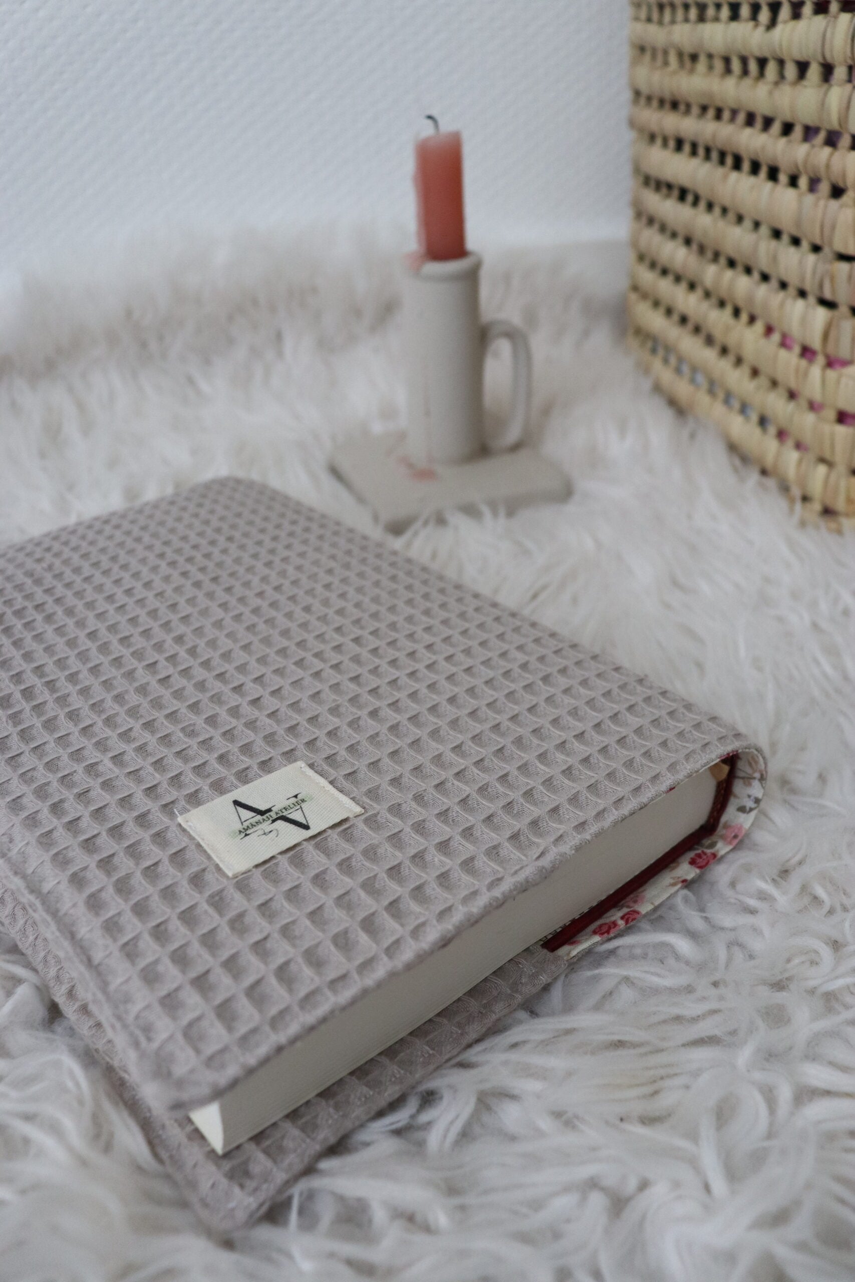 Protège-Coran confectionné à la main en tissu nid d’abeille, doublé d’un tissu en coton, pour une protection légère, douce et élégante.